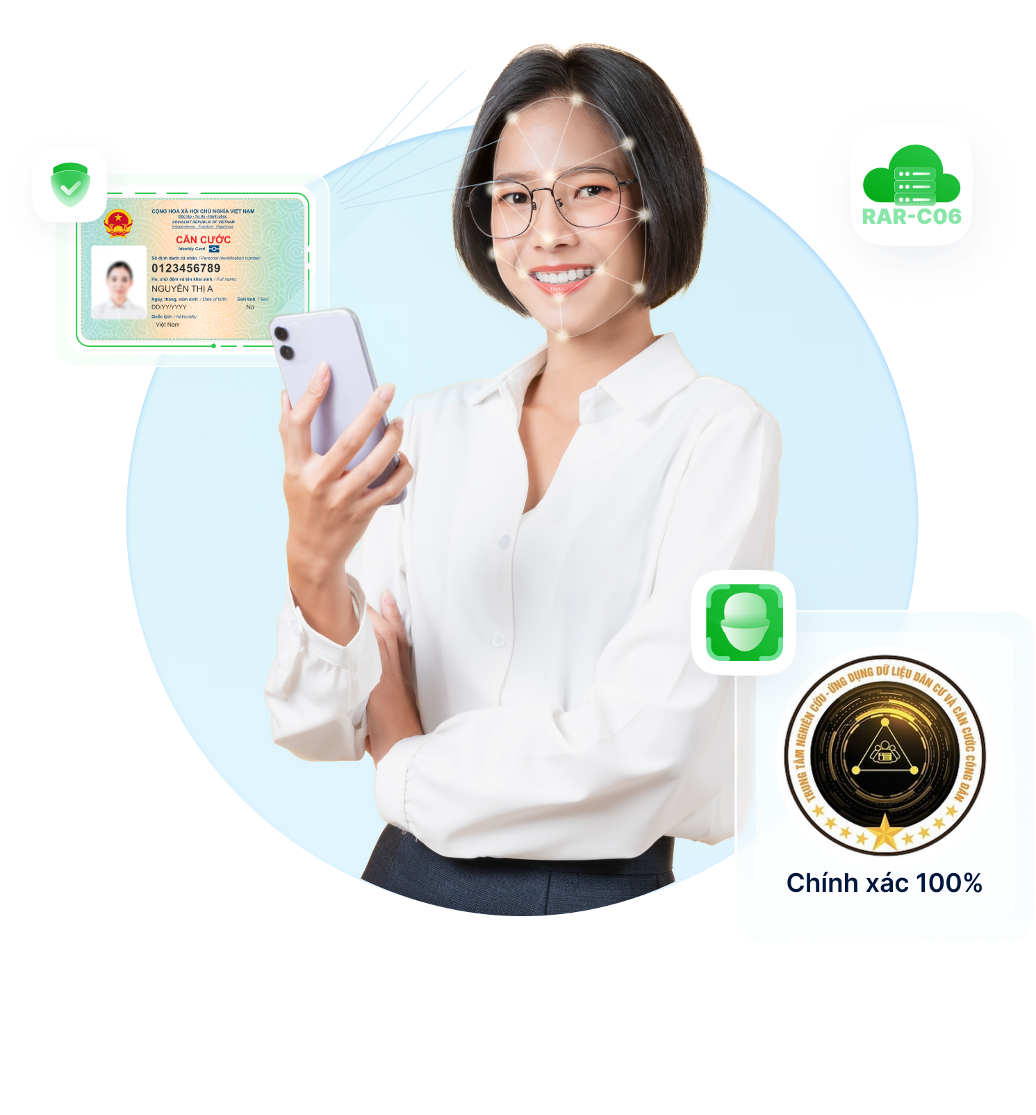 eKYC IDCheck is a solution that verifies data accuracy and integrity by validating the signature stored on the chip against the RAR-C06 database of the Ministry of Public Security. IDCheck offers absolute anti-spoofing capability, minimizes risks in electronic identity verification transactions, enhances customer experience, and supports businesses in meeting their digital transformation needs.